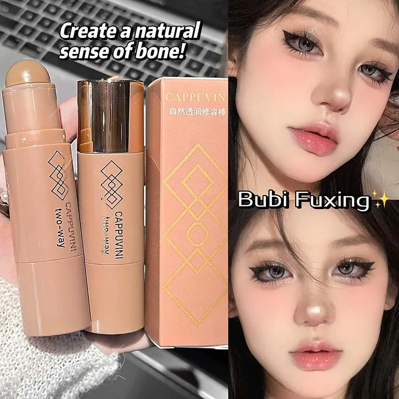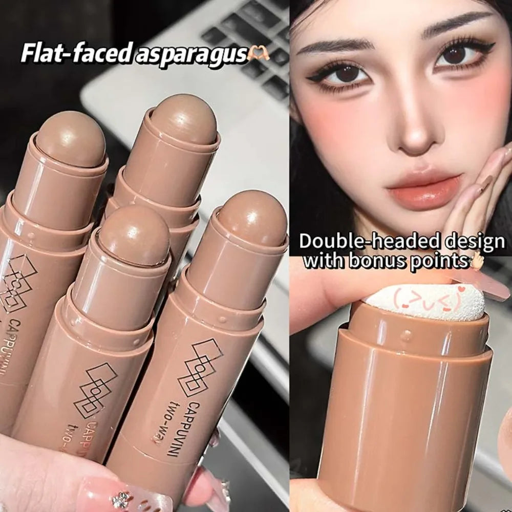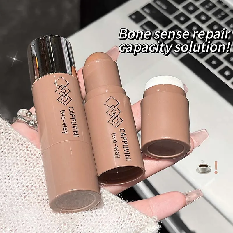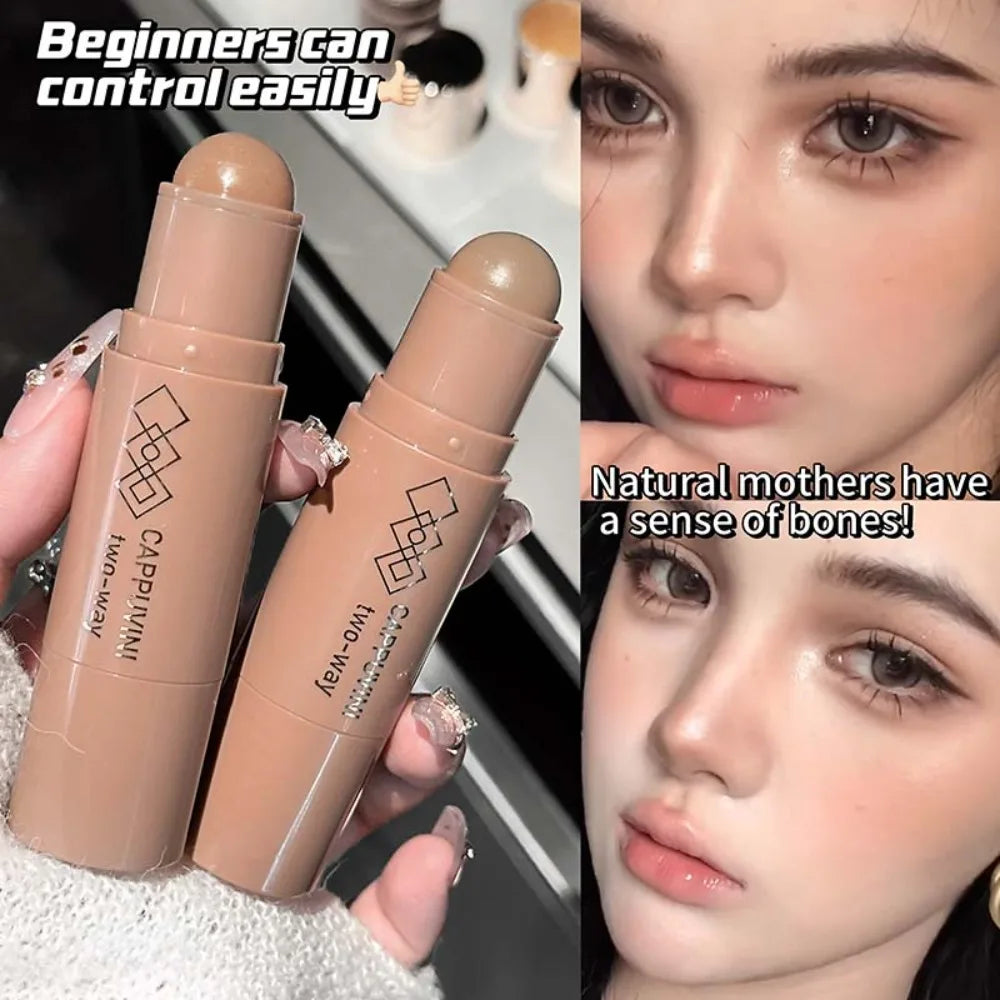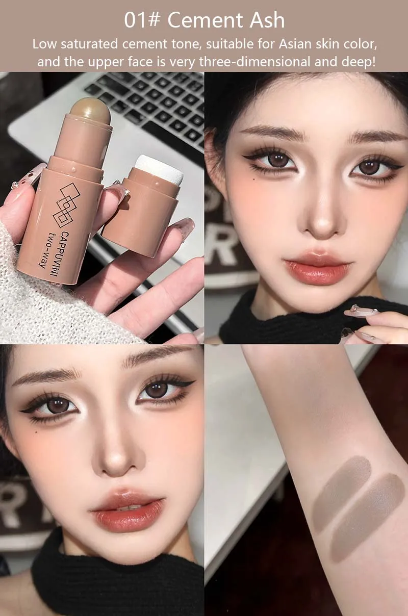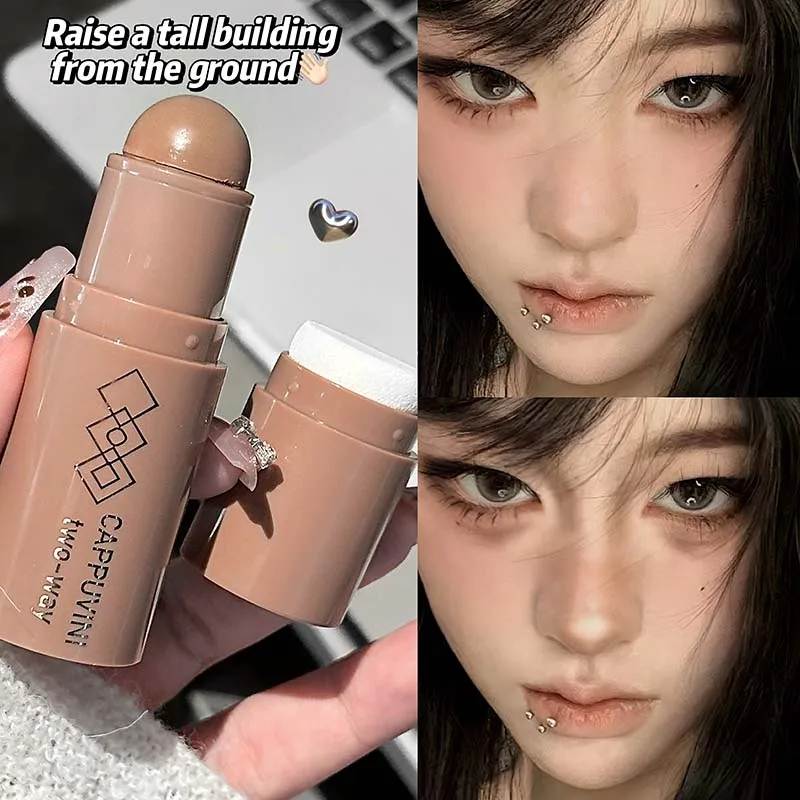 2 In 1 Face Contour Bronzer Stick Face Brighten Highlighter Bar Matte 3D Nose Shadow With Sponge Concealer Cream Makeup Tool