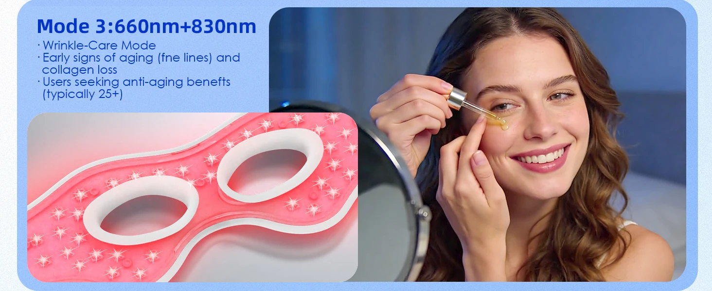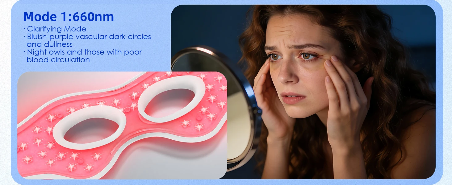 Ergonomic Contour Design: Precisely curved to match natural eye contours, providing secure fit for enhanced light therapy accuracy and comfort. Minimizes light leakage and energy loss while eliminating pressure on nasal bridge or cheekbones, allowing extended fatigue-free use