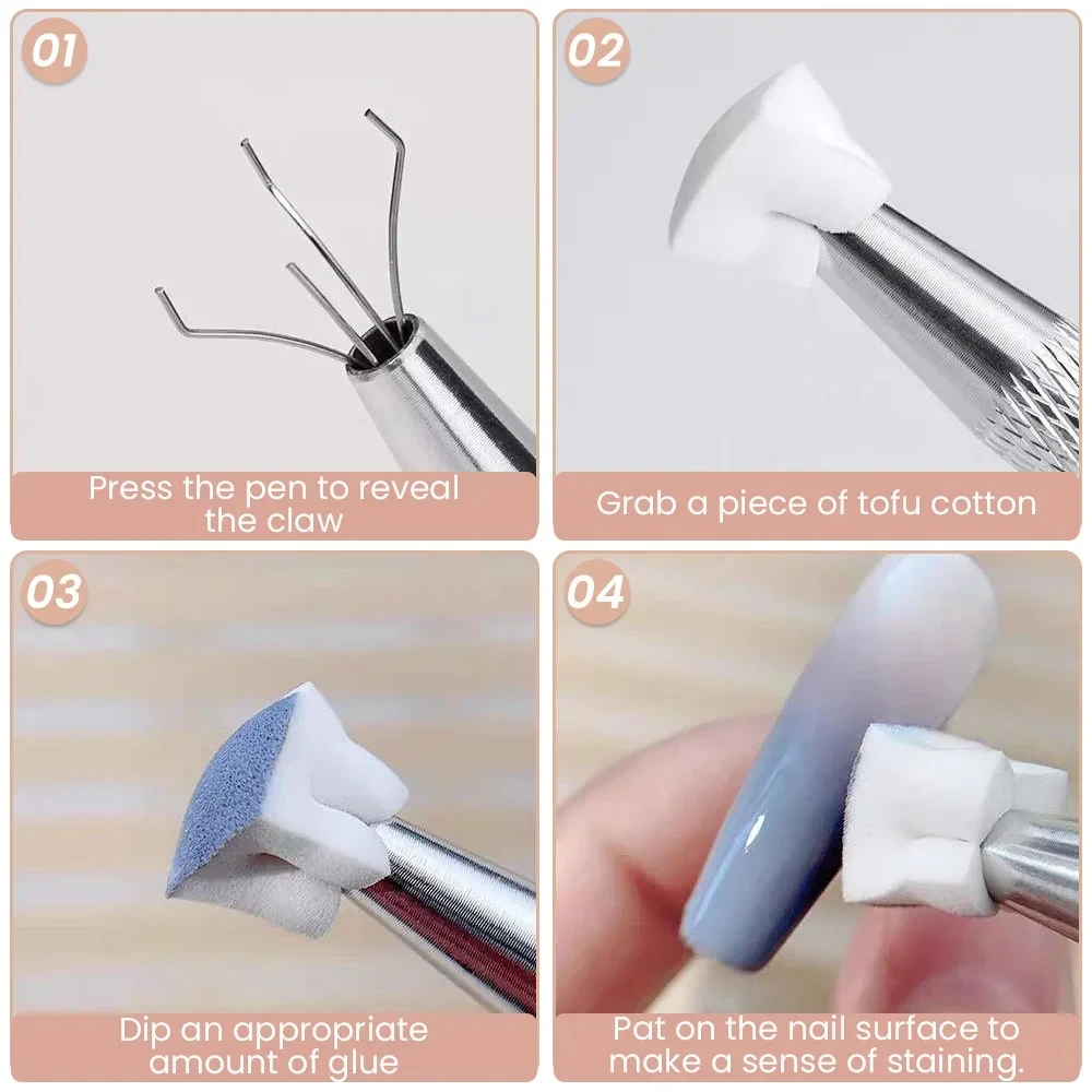 50pcs Sponge Gradient Nail Art Stamper Tools Gel Polish Color Gradient Brush Glitter Powder Dotting Pen For Manicure Tools