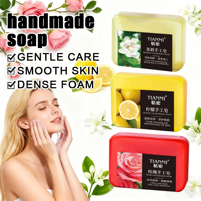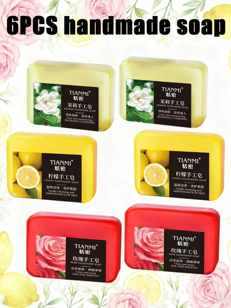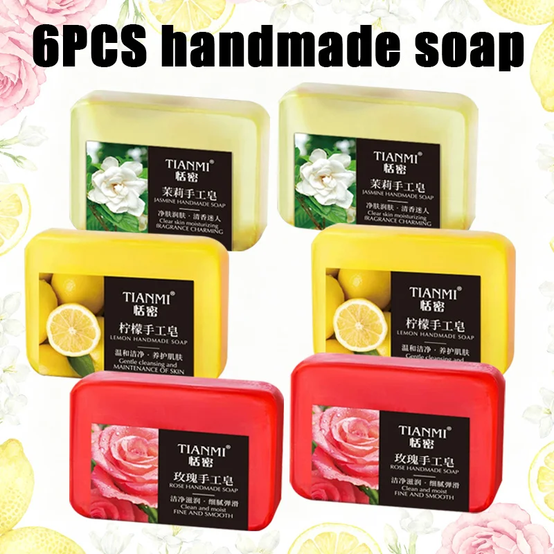 6PCS fruit floral handmade soap, jasmine, rose, lemon handmade soap, gentle cleaning, bathing the whole body, moisturizing and hydrating
