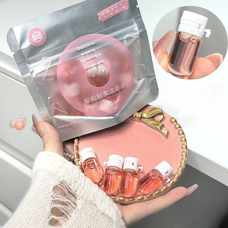 7/10/30 Capsules of Green Cleansing and Makeup Remover Oil, Emulsified, Refreshing, Mild, Non-Irritating, Portable for Travel