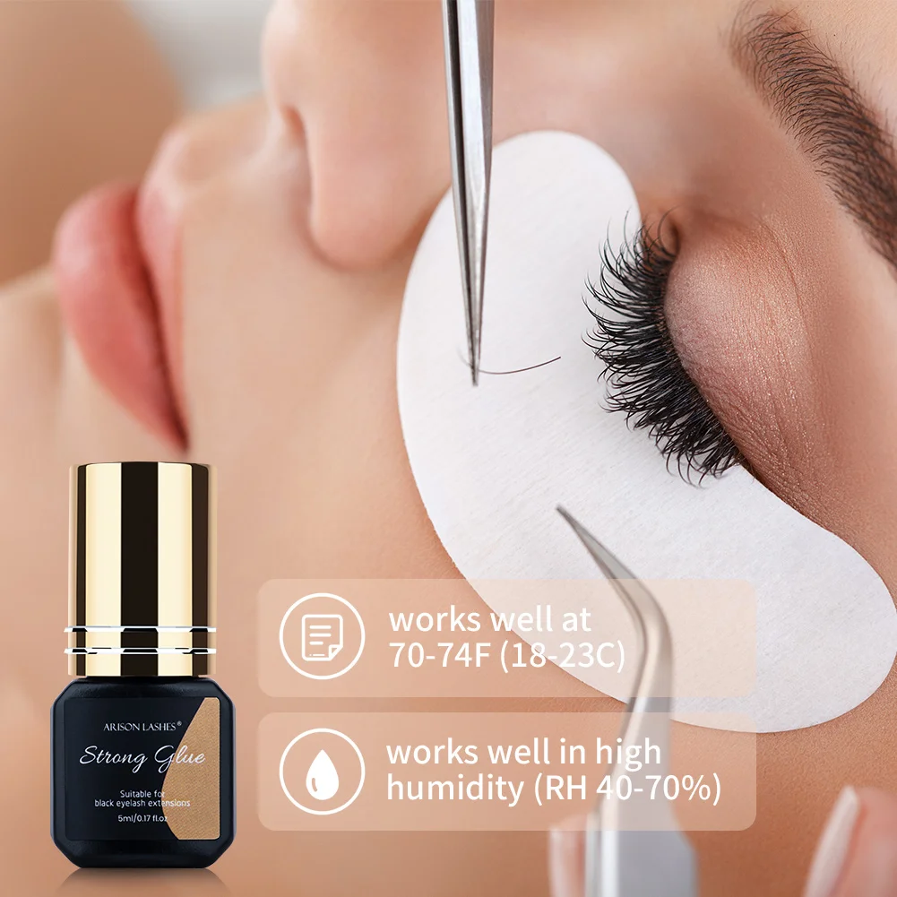 ARISON 1s Fast Dry Eyelash Extension Glue 5ml Non - irritating Adhesive Black YY and W Lashes Glue Retention 5-7 Weeks No Smell