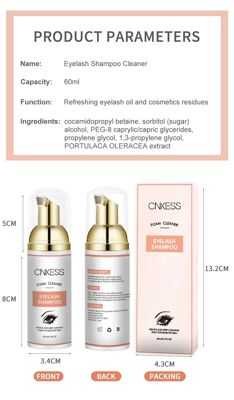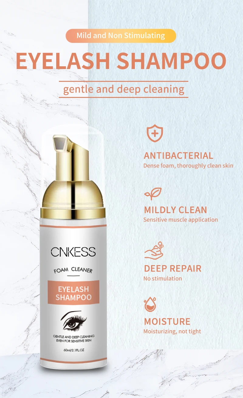 CNKESS Wholesale 60ML Private Label Natural Oil Free Eyelash Foam Eyelash Extension Lash Bath Lash Foam Shampoo Cleanser