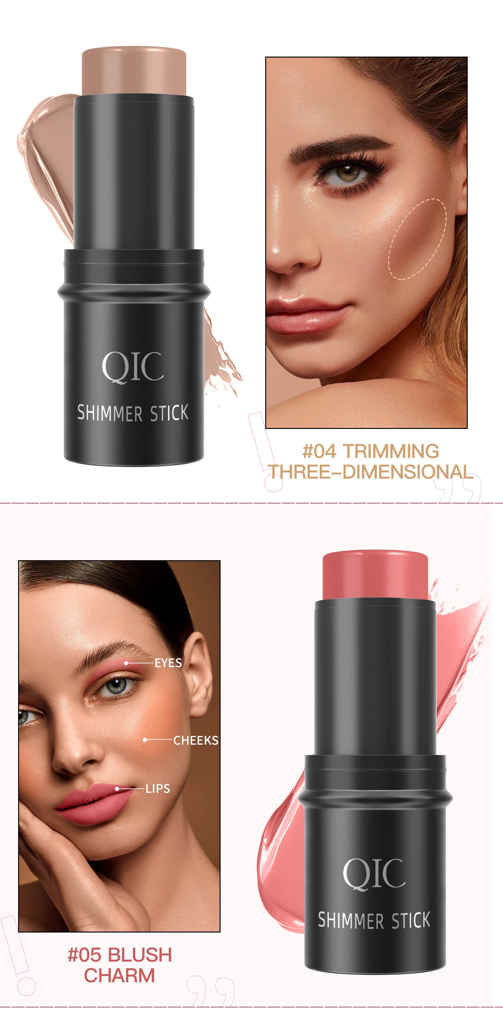 QIC Face Contour Brightener Shadow Stick Face Stereo Blush Stick Long Lasting Waterproof Concealer Highlighter Cosmetics