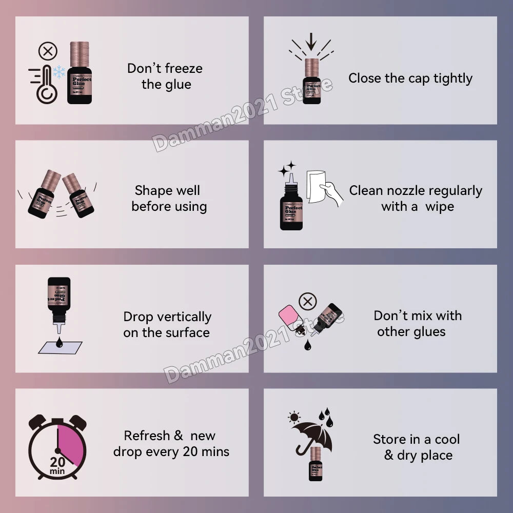Damman Lash Gule for Eyelash Extension Low Stimulation Lash Extension Glue Professional Eyelash Glue Retention time 8-10 Weeks