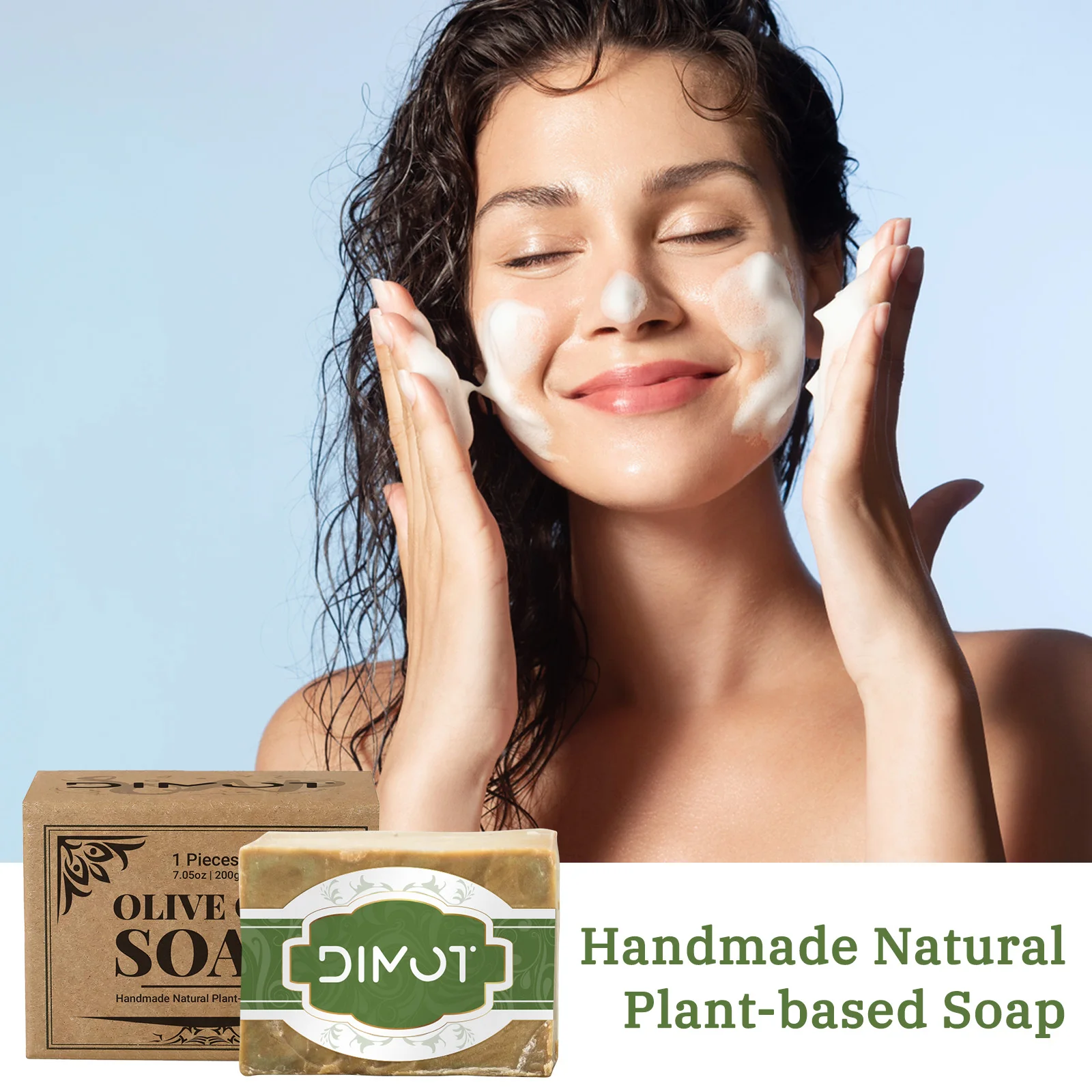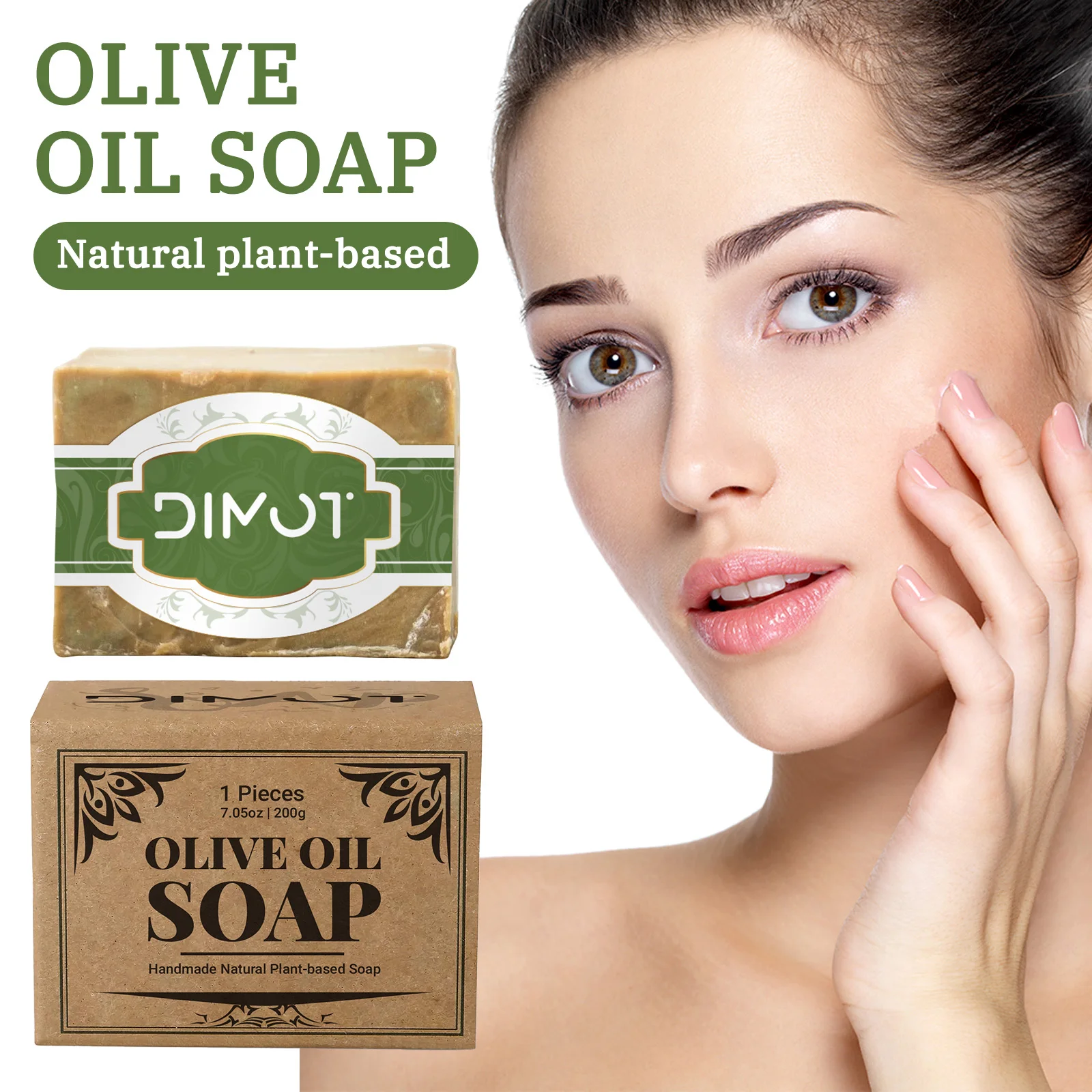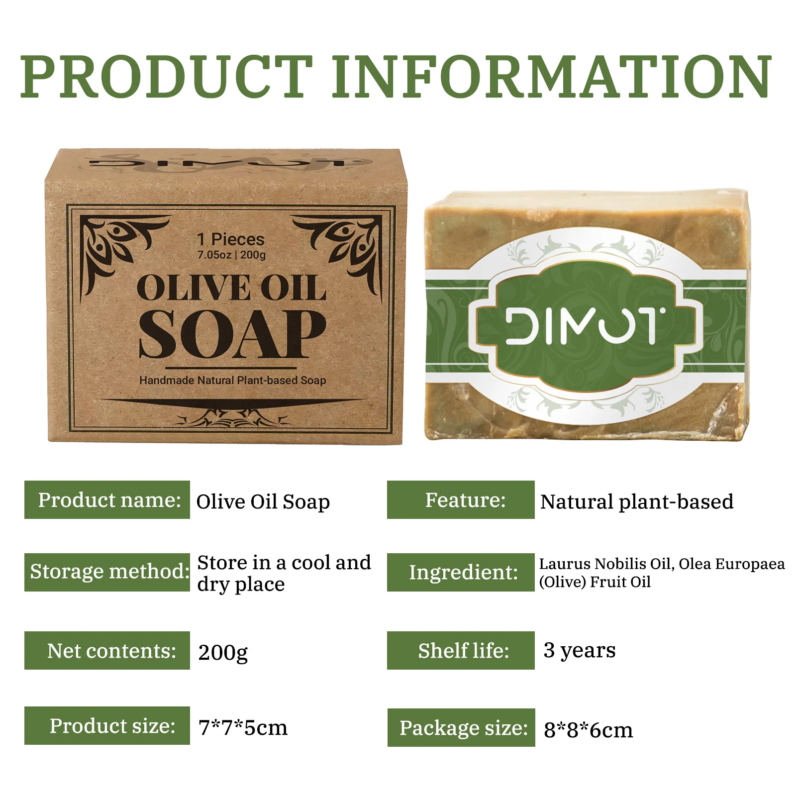 DIMOT Handmade Olive Oil Soap Bar 200g - Natural Plant-Based Laurus Nobilis & Olea Europaea Fruit Oil for Face, Body, Hand