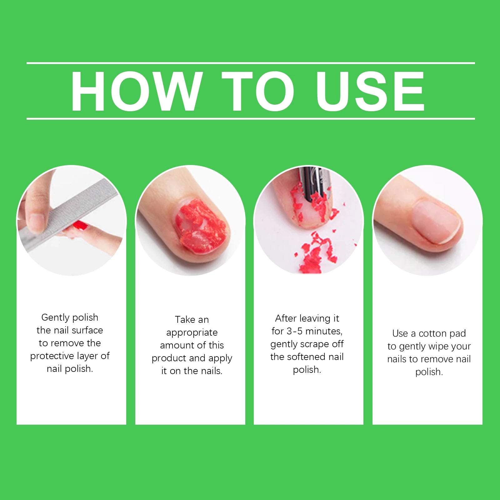 3. After leaving it for 3-5 minutes, gently scrape off the softened nail polish.