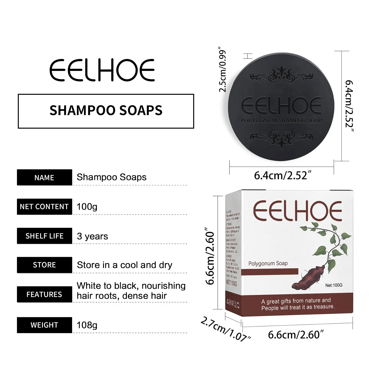 EELHOE Polygonum Multiflorum Shampoo Soaps Deep Cleaning Hair Moisturizing Care Cover Gray Hair Dye Ginseng Extract Shampoo Soap 100g
