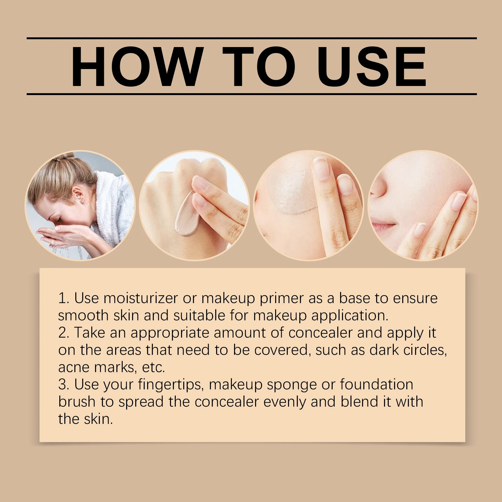 2. Apply a proper amount of concealer to the parts that need to be covered, such as dark circles and pockmarks.