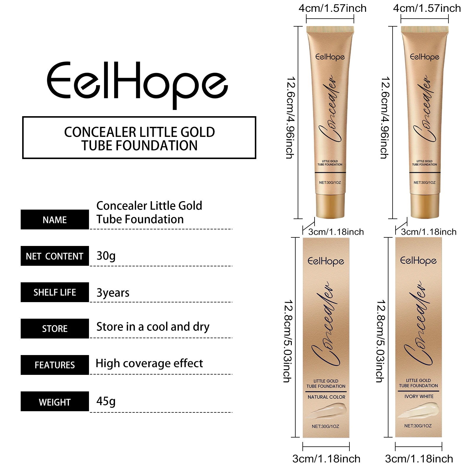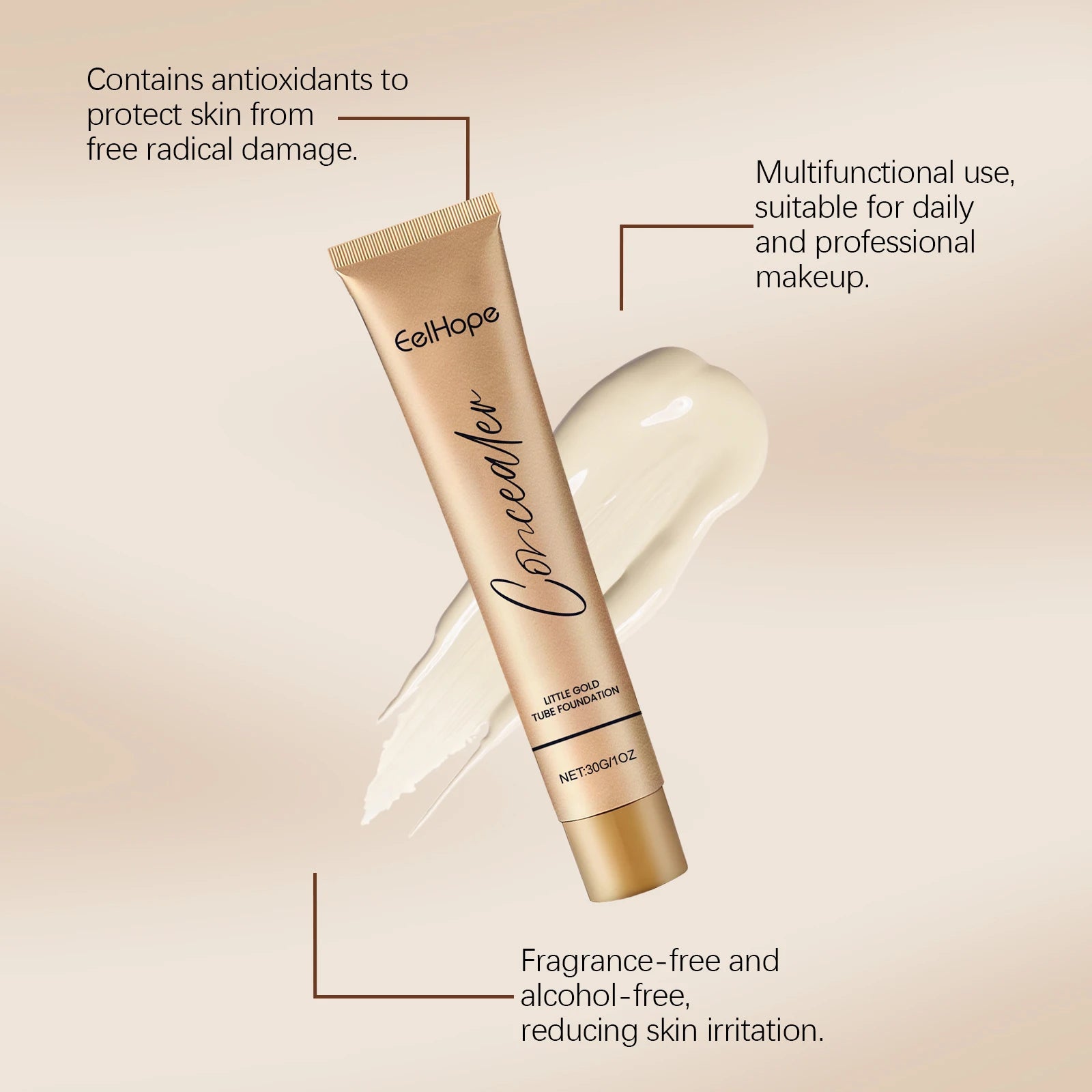 Eelhope Foundation Concealer Improve Skin Elasticity Brighten Complexion Not Easy Remove Makeup Moisturizing Gold Tube Liquid Foundation 30ml
