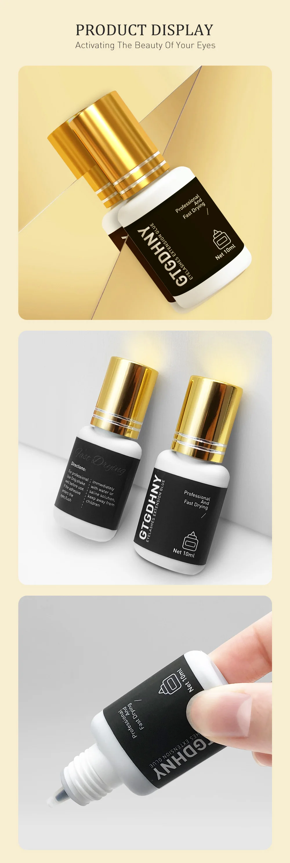 GTGDHNY 10ml Eyelash Glue 1 Seconds Fast Drying Eyelashes Extension Glue Pro Lashes Glue Black Adhesive Retention Long Last
