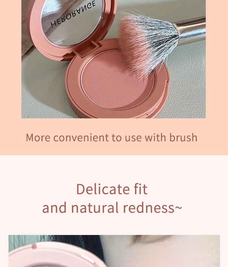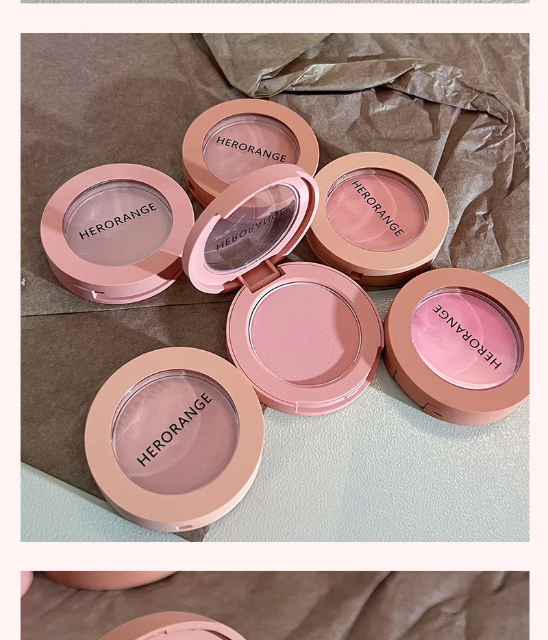 HerorangeHR402 Serbuk Serbuk Monokrom Kalis Air Panjang Tahan Lama Plat Peach Orange Kabus Lembut Lembut Matte Semulajadi Blush
