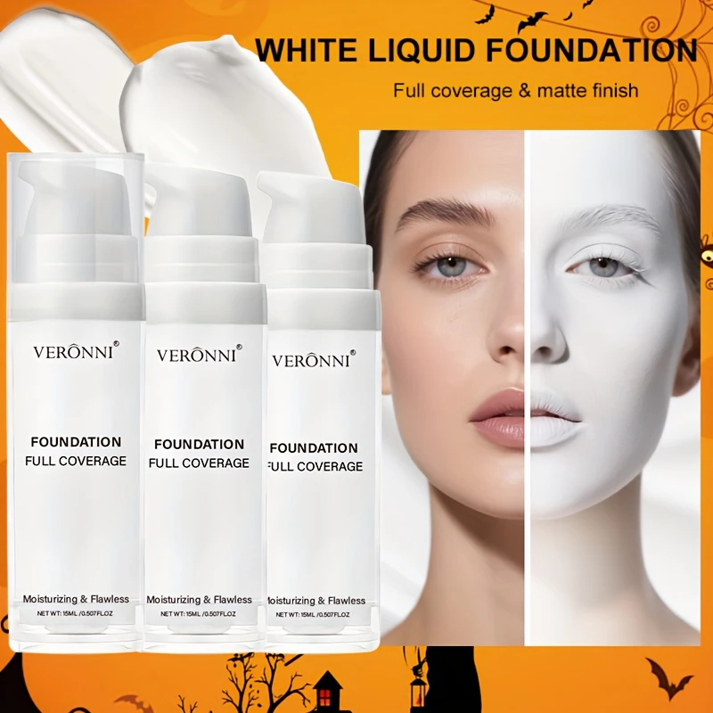 Matte White Liquid Foundation Makeup,Buildable Coverage Primer & Concealer Stick,Waterproof & Long-Lasting for Halloween,Cosplay