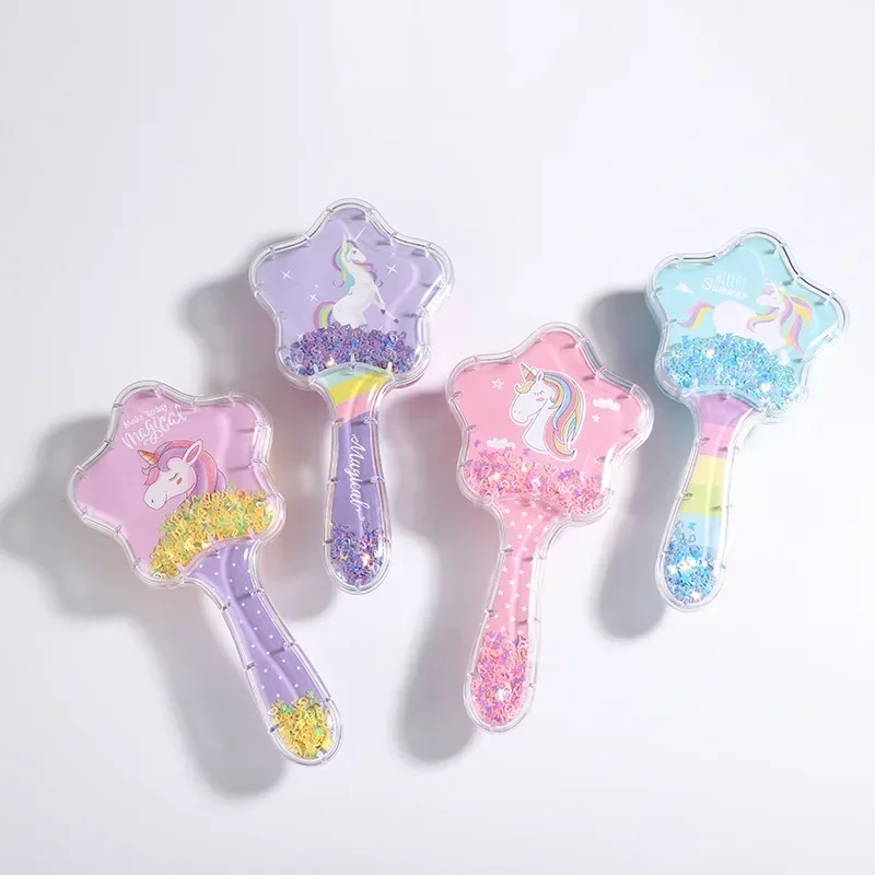 New Cartoon Air Cushion Massage Comb Star Shape Sequins Quicksand Anti-knot Combs for Baby Kids Comb for Curly Hair