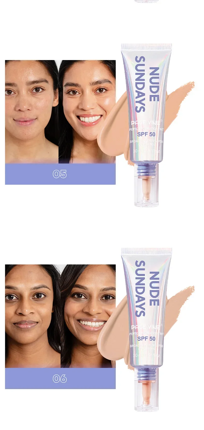product name: page vine SPF 50+ peptide foundation