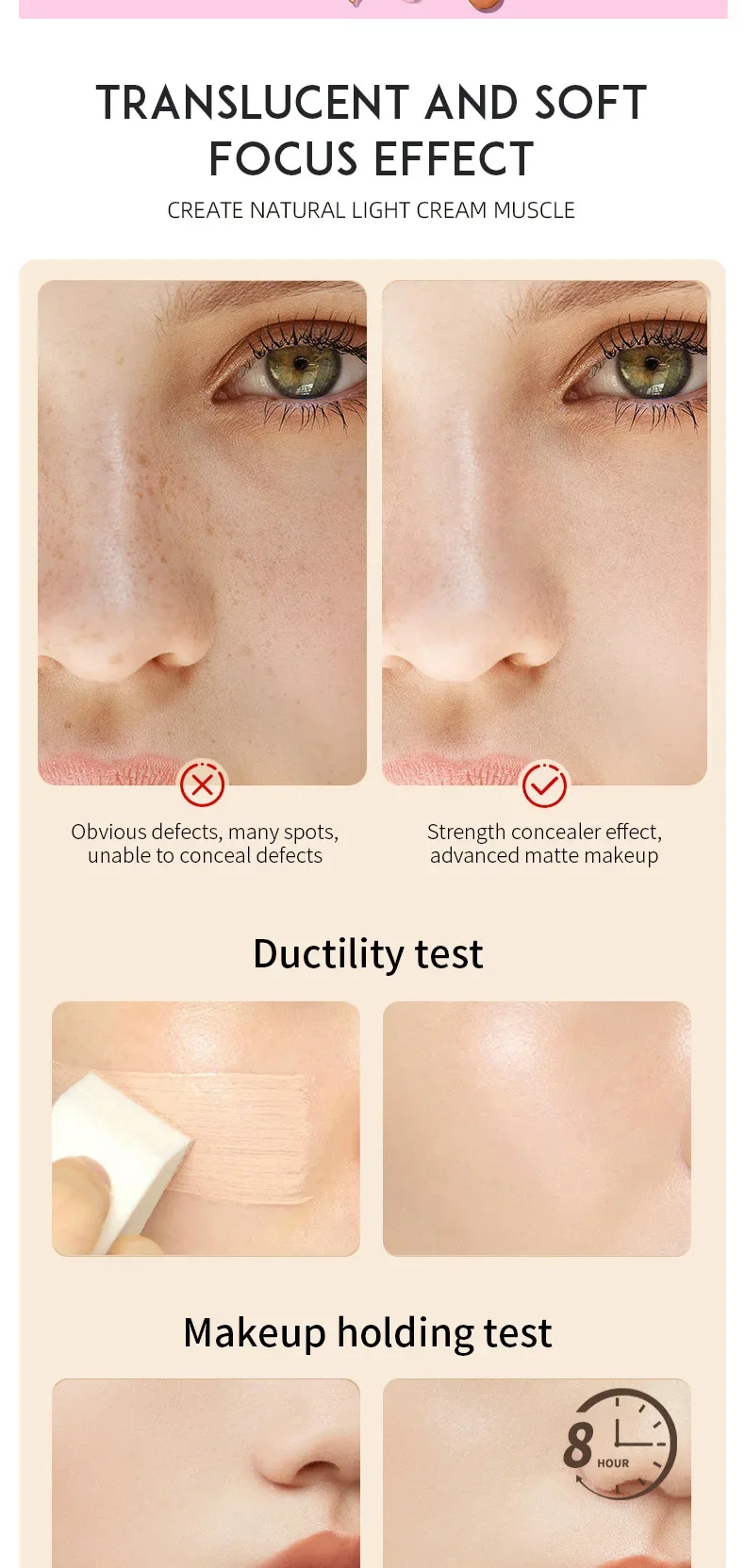 PAGE VINE Peptide Foundation Tint SPF50 Flawless Foundation Oil Control Concealer Non-Flaking Full Coverage Hydrating Makeup Hot