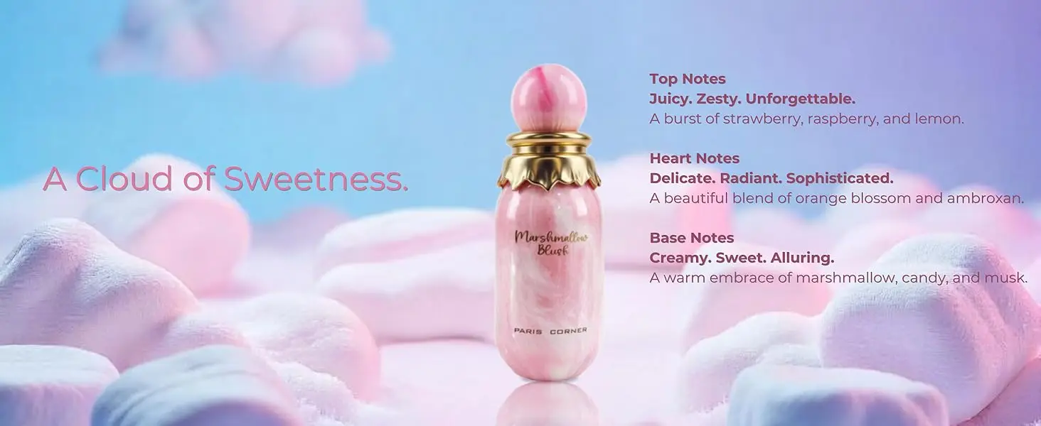 Paris Corner Marshmallow Blush EDP 3.4 Fl Oz | A Unique Gourmand Marshmallow Strawberry Perfume for Women | Long-Lasting