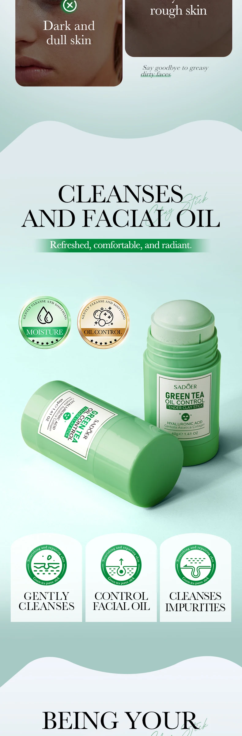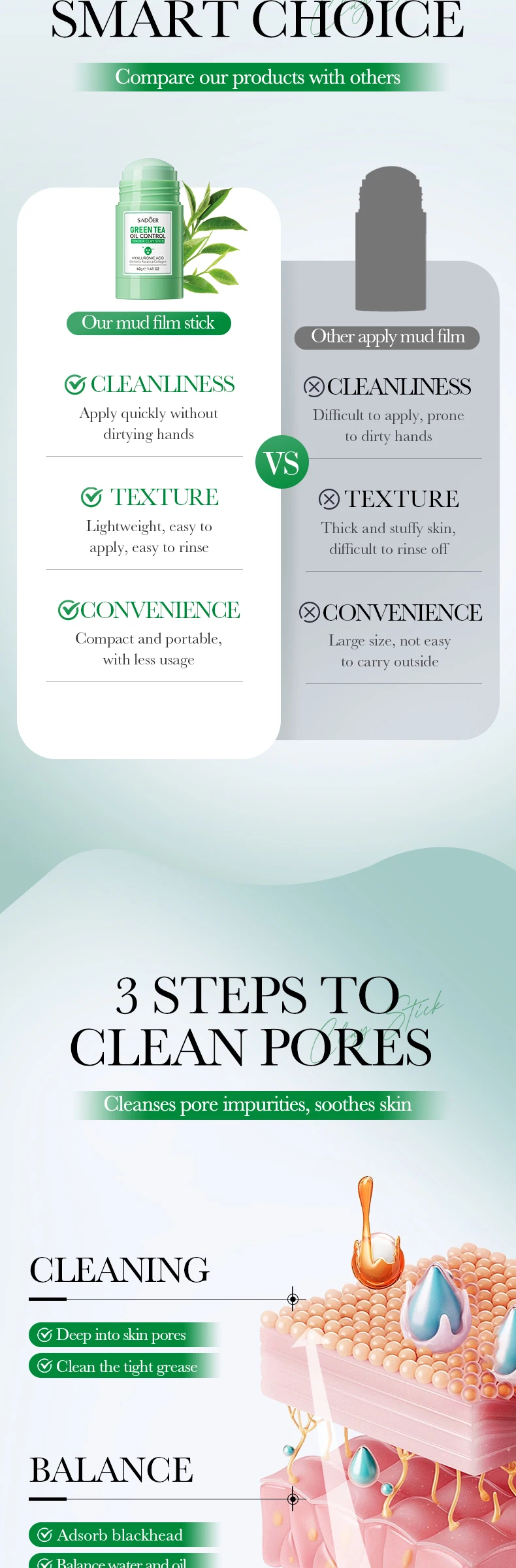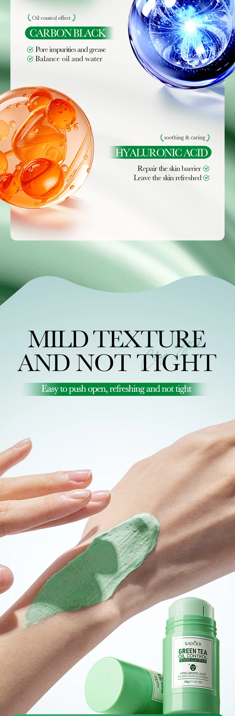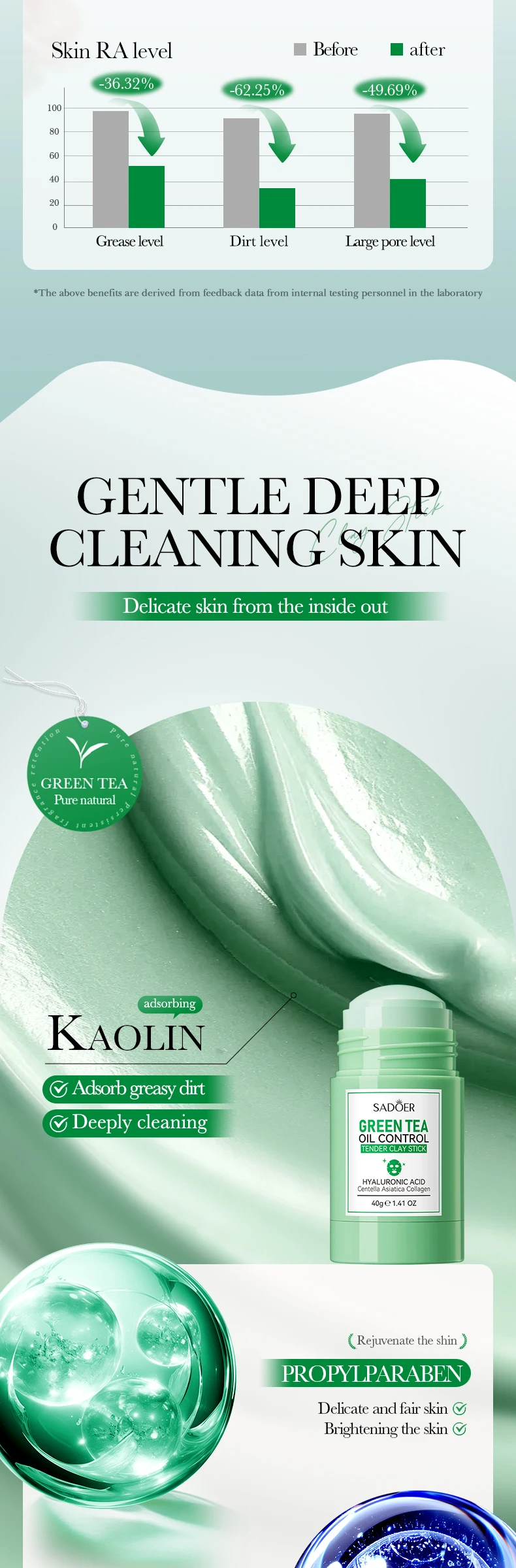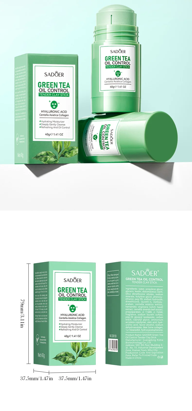 SADOER Green Tea Face Masks Stick Clay Mask Shrink Pores Deep Blackhead Remover Facial Cleansing